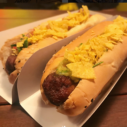 Restaurante onívoro, com opções veganas de cachorro-quente.