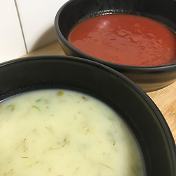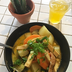 Barraca de sopas ovolactovegetariana, com opções veganas.