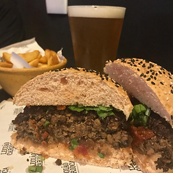 Restaurante/bar onívoro, com opções veganas de petiscos, cachorro-quente, hambúrguer e sobremesas.